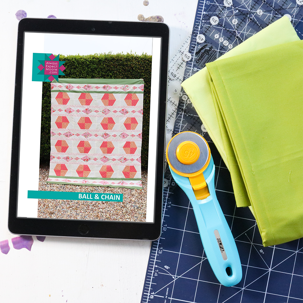 The Ball & Chain quilt is a beginner-friendly quilt, made by piecing blocks into rows. These rows are then stitched together to make the quilt. There are just two different block types in this quilt that make up the rows.