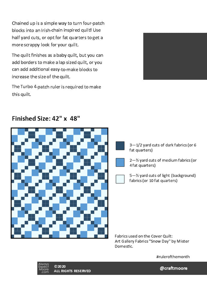 Inspired by the traditional Irish Chain design, this baby quilt looks much harder to make than it actually is! The pattern provides instructions for making the four-patches that come together to make this quilt. Give this quilt as a gift, and your recipient is sure to exclaim "Look at all those pieces!" ... but you'll know how simple it really was to piece.