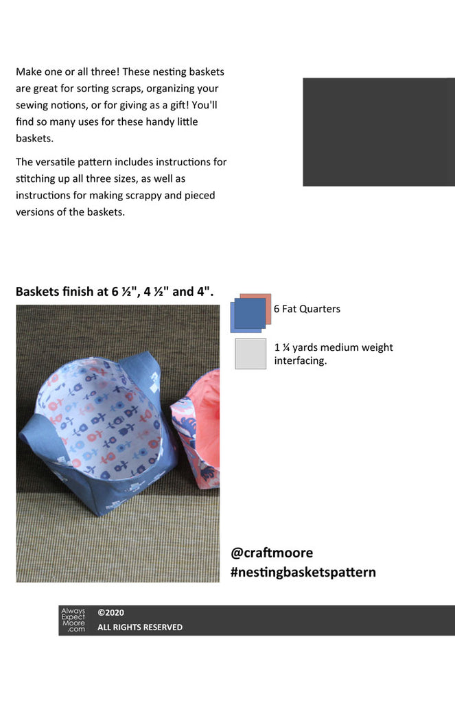 Make one basket or stitch up all three sizes! These nesting baskets are great for sorting scraps, organizing your sewing notions, or for giving as a gift! You'll find so many uses for these handy little baskets.