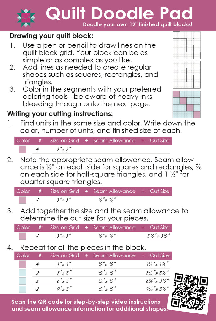 Each notepad measures 4" x 6" and contains 50 sheets. Grid is designed for drawing 12" finished quilt blocks.